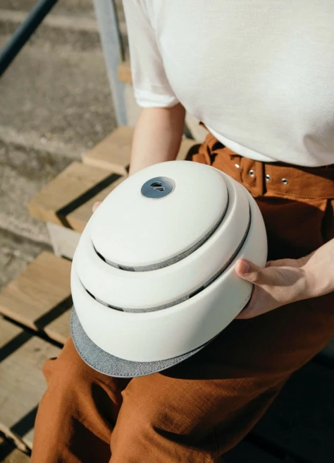 Système de pliage breveté par Closca : réduction de 55% de la taille du casque