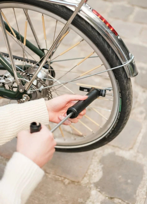 Un essentiel à avoir près de soi c’est la pompe, en cas de crevaison ou simplement pour ne pas être à plat. La pompe Peakini remplit parfaitement cette tâche grâce à une petite taille, un embout facile d’utilisation, une poignée orientable pour plus de force (et moins de douleur). On vous conseille de toujours l’avoir sur vous, ça et un kit de réparation. Si vous êtes comme nous vous allez préférer arriver sur le vélo qu’à côté !