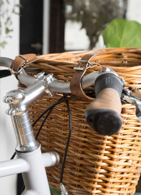 La marque Basil propose aux cyclistes des accessoires de vélo chics urbains et haut de gamme. Le panier Bremen se fixe à l’avant du guidon ou sur le porte-bagages avant du vélo. Ce panier vintage en osier tressé (rotin) vous permet de transporter en toute sécurité et avec style vos courses ou affaires du vélo à la main !