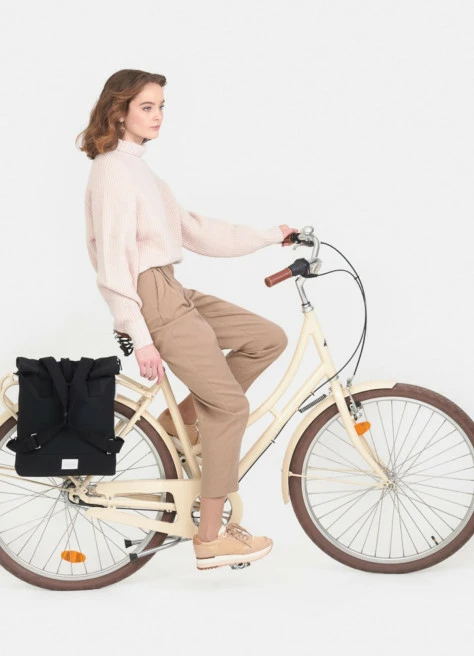 Ramener les bretelles du sac à dos porte-bagage vers le devant du sac et attachez-les grâce au bouton pressoir. Ceci évitera ainsi qu’elles ne se prennent dans vos roues lors de vos trajets.