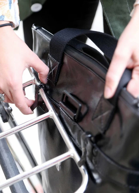 Crochets qui permettent de fixer facilement le sac tote au porte-bagages