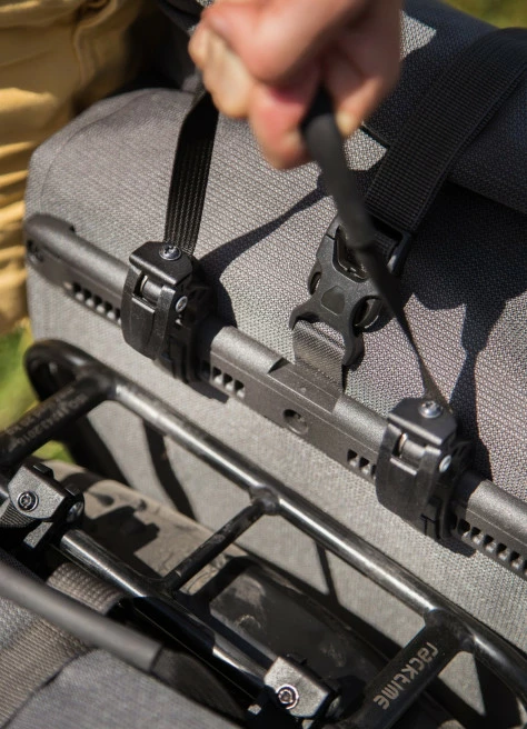Fixation simple, rapide et solide avec les attaches Quick Lock 2.1 d’Ortlieb (voir vidéo ci-dessous)